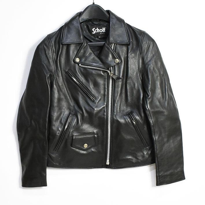 Schott サイズM シープスキン ブラック レザーライダースジャケット Schott N.Y.C(ショット) SCHOTT レディース WOMEN's RIDERS JACKET